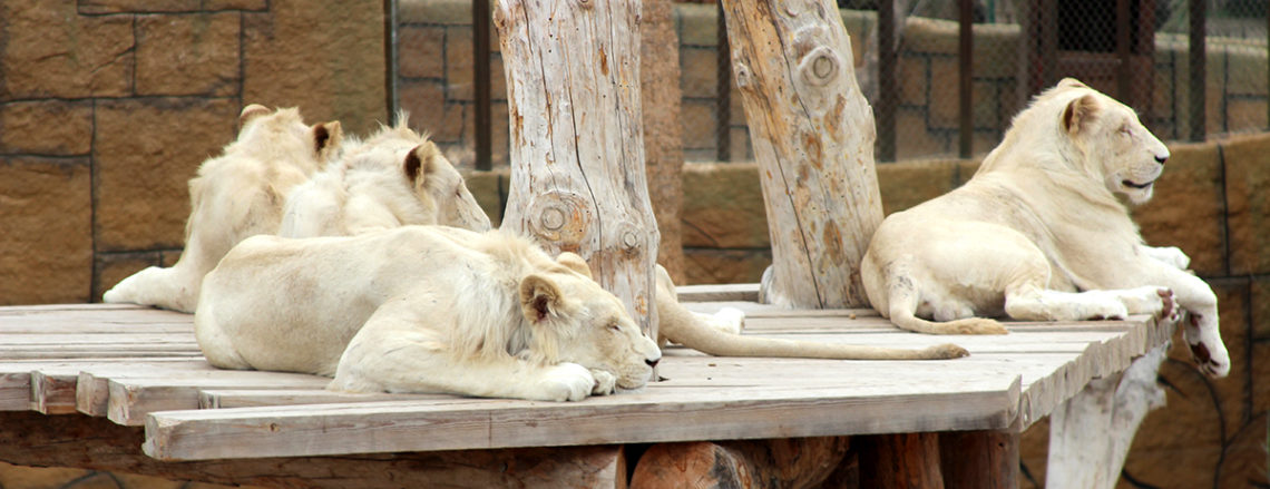 Wir beginnen unsere Tour im Park. Am Eingang wartet schon eine Zoowärterin mit einer Schlange um den Hals und einer Kamera. Natürlich machen wir ein Foto. Es geht weiter mit Pferden, Ziegen und Büffeln. Der Abschnitt mit den Tieren aus der Savanne ist besonders nett. Löwen, Giraffen, Zebras, Gazellen und sogar weiße Löwen kann man dort bewundern. Wir haben Glück und andere Parkbesucher füttern gerade eine Giraffe. Wir können ein tolles Foto mit ihr machen.